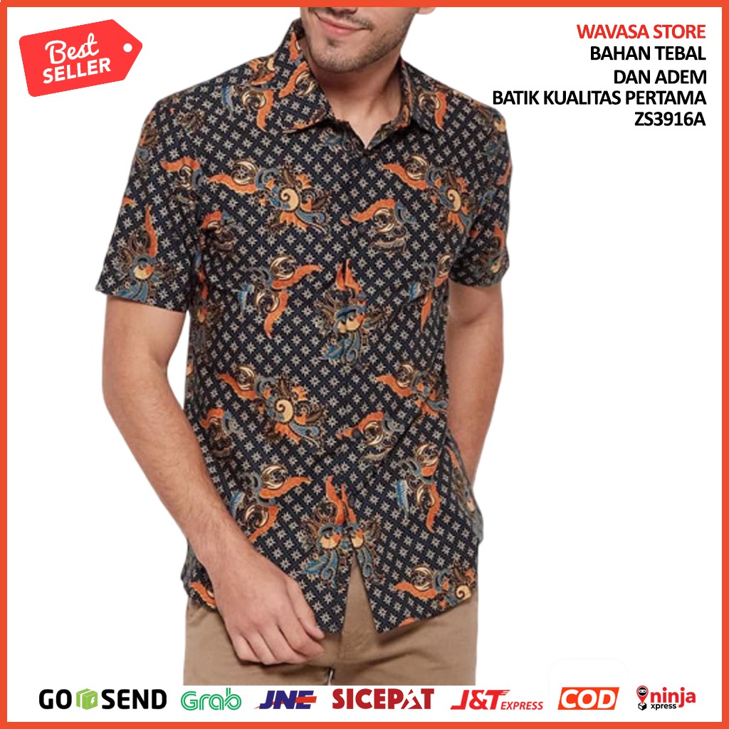 Cuci Gudang Pakaian di Kabupaten Belu Kemeja Batik Kantor Pria Baju Formal Unik Cowok Hem Lengan Pendek Slim Fit Batik Kerja Slimfit D7v2 dari Odza Kota Jakarta Pusat