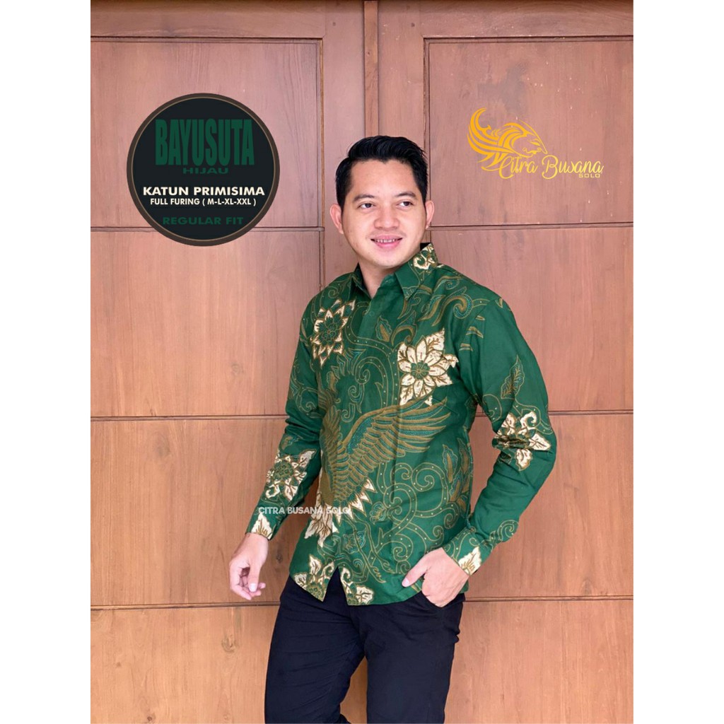 Name: Bayusuta Hijau Kemeja Batik Pria Full Furing Bahan Katun Primisima