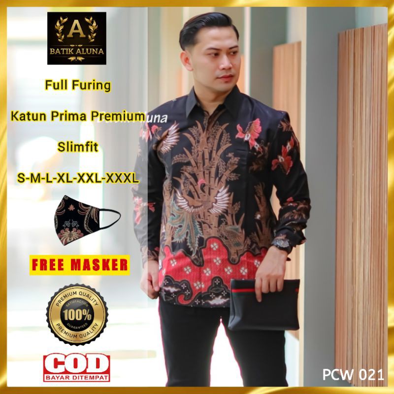 Harga Pabrik Pakaian di Kabupaten Alor Atasan Baju Kemeja Batik Pria Cowok Lengan Panjang Premium Slimfit Modern Original Asli Solo Pcw 021 dari Batik Aluna Original Kab. Sragen