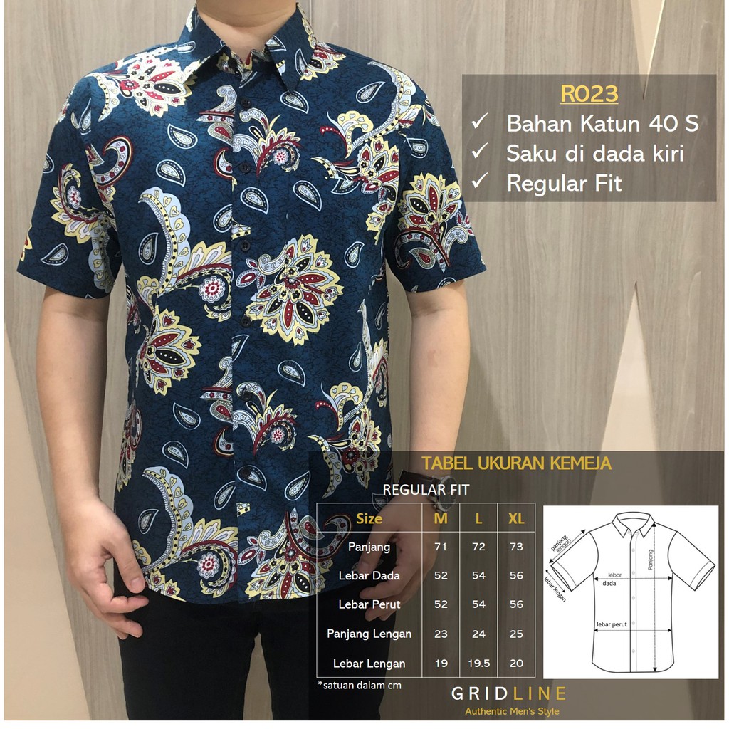 [GRIDLINE R023 & R050] Kemeja Batik Pria Katun Lengan Pendek Regular