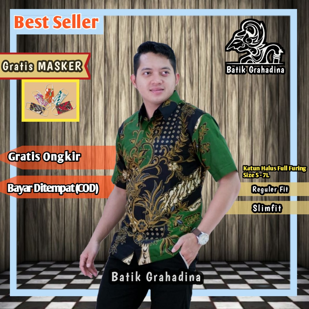 Termurah Pakaian di Kabupaten Manggarai Setyo Luhur Hijau Batik Pria | Kemeja Batik Pria Lengan Panjang Katun Halus Primisima Furing Sragen dari Graha Batik Kab. Sragen