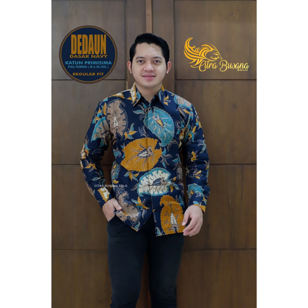 Name: Dedaun Navy Panjang Kemeja Batik Pria Full Furing Bahan Katun Cabut Primisima