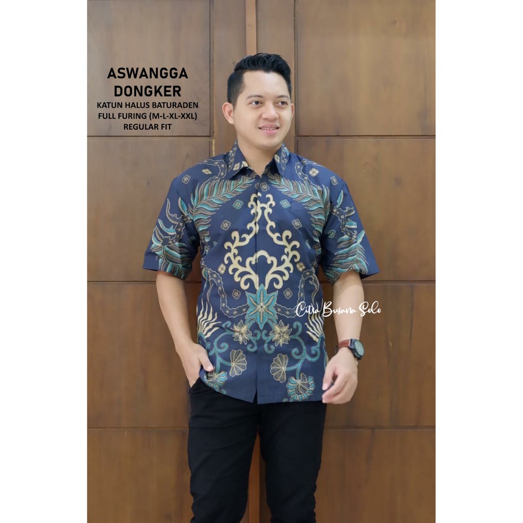 Name: Aswangga Dongker Pendek Kemeja Batik Pria Full Furing Bahan Katun Halus Baturaden